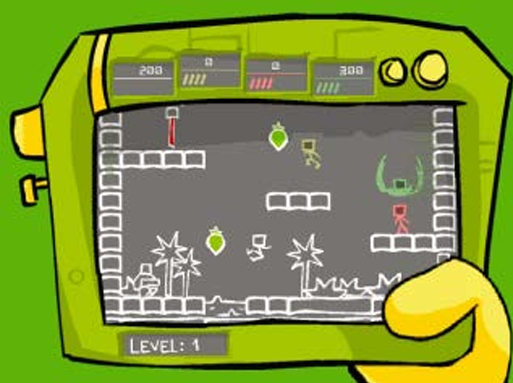 Alien Hominid features quite a few minigames, including this retro-styled PDA-themed retro platforming game. Image and caption via Game Developer Magazine, May 2005.