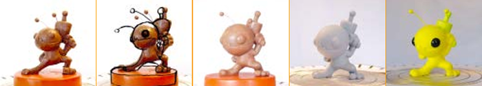 Figurine models went through many phases, from initial clay molding, to a repositioning based on Dan’s corrective sketches, to resin, to the eventual finished product. Image and caption via Game Developer Magazine, May 2005.
