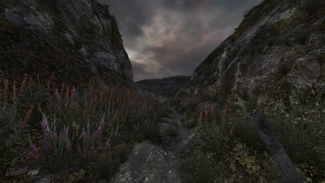 It’s a complicated moment, certainly, and while I understand the limitations they were working under, we also see here how Dear Esther was an early experiment that should be improved upon rather than directly imitated. The point of using a game to tell this story is to put the player in someone else’s head through imitative motion. By simulating the act of being that person in their world, you’re immersing the player in a way games excel at. In reducing them to a film-watcher, something is lost. But Jessica Curry also makes a good point about loss of control, something else that games like this excel at. They make binding limits into intriguing experiences that offer their own kind of freedom. I don’t know if this climax at the radio tower quite pulled that off, but like so much about Dear Esther it suggested possibilities for other developers to expand on.