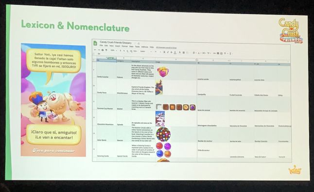 Charm is something the characters and examples John brought during her talk seem to ooze, and something that can be difficult to project when working with limited resources. For Candy Crush Saga, John wanted to give players an unobtrusive way to give more personality to characters, but had to do so without any additional art. The solution was to scatter existing characters across the map and let players tap to see small blurbs that offered up mission hints or light background.