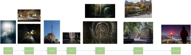 A thumbnail flow with high level concept or images will allow you to track a very basic colours script and ensure that the locations are varied. Try layering in the locations above the key beats and see what you have. It should allow you to ensure that the mood can match the beats. Narrative focused games are particularly careful with the colour tones to ensure they match the mood of the beat. Given the subject matter and themes In my proposal, I aimed to start of with a suitable dreary misty/raining street to match the mood of the girls. We can vary the weather and tone to ensure that the characters and players have moments of hope, and these are reflected in the visuals.