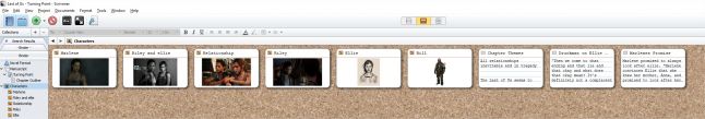 Scrivner - used for research to develop a timeline, understand characters/motivations and themes.