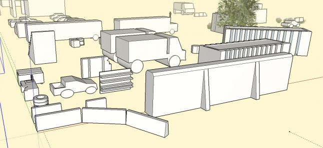 It really helps to create a pallet of objects you intend to work with before you get started. In the example below you can see a pallet of all the objects I would likely repeat in a cover based shooter.