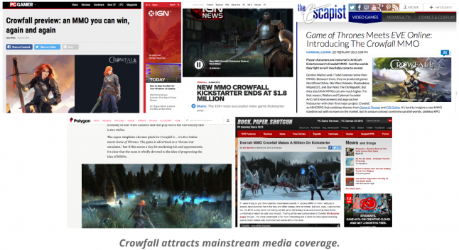 It is difficult to say how much the branding specifically contributed to the early crowdfunding success of Crowfall… though it isn’t hard to believe that it boosted pre-launch user registrations and day one pledges in a material way.