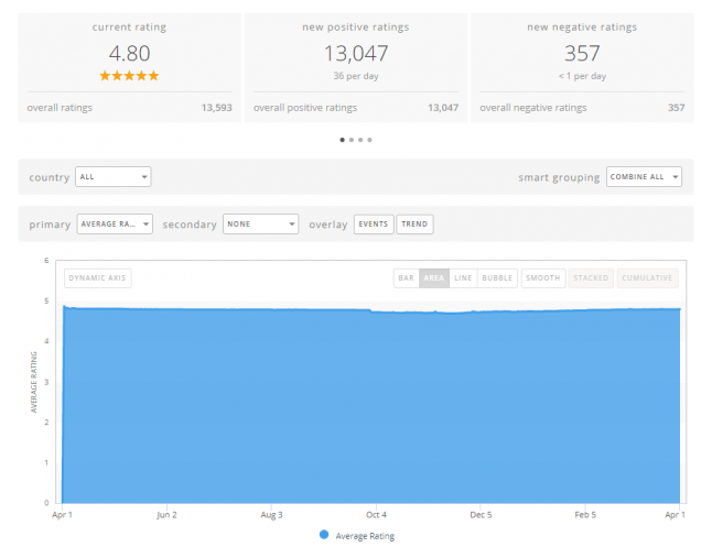 Analysing these graphs - particularly the App Store’s - would take a long time. So the key point here is not the detail, but that ratings go up and down over a long period of time: they don’t start high and trend downwards into nothingness like premium mobile games’ graphs did when you started with that huge week-long featuring but didn’t have much else to buck your sales in the long-term.