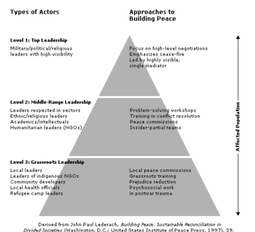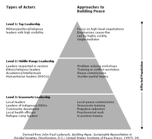 Eventually I came to realize there were many different conflicts, all mixed together inside this one war. You can imagine this as a pyramid. At the top there are just a few, high-level conflicts and actors. As you go down the layers, you get more conflicts between smaller groups. And because it is all happening in the same place and time, you end up with groups taking advantage of other conflicts, with shifting alliances, with backstabbing, and intrigue.