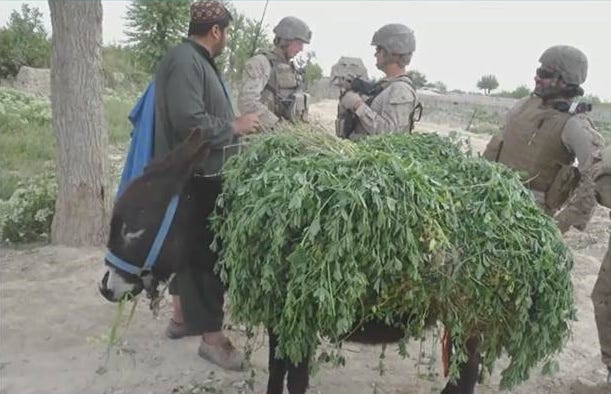A typical day of walking around in a minefield, talking to farmers about their donkeys, or their house that got blown up. This is what modern warfare looks like today. You know what I heard one of the younger Marines say in the middle of this deployment?