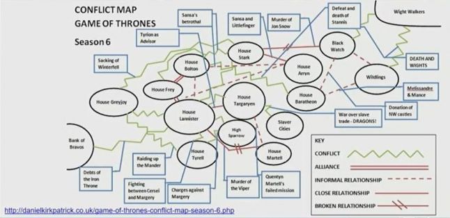 I’d argue it makes for an engaging narrative loop. You start off with this sense of discovery as you first enter the world. You start naive, like Ned Stark: unable to see the game being played in the world around you. Once you finally start to understand the game, who’s playing it, and what their goals are, something changes everything. A new player enters the game, or someone switches sides, or some intrigue like the Red Wedding is revealed. And then you have to discover the game all over again. That’s an incredibly engaging core loop.
