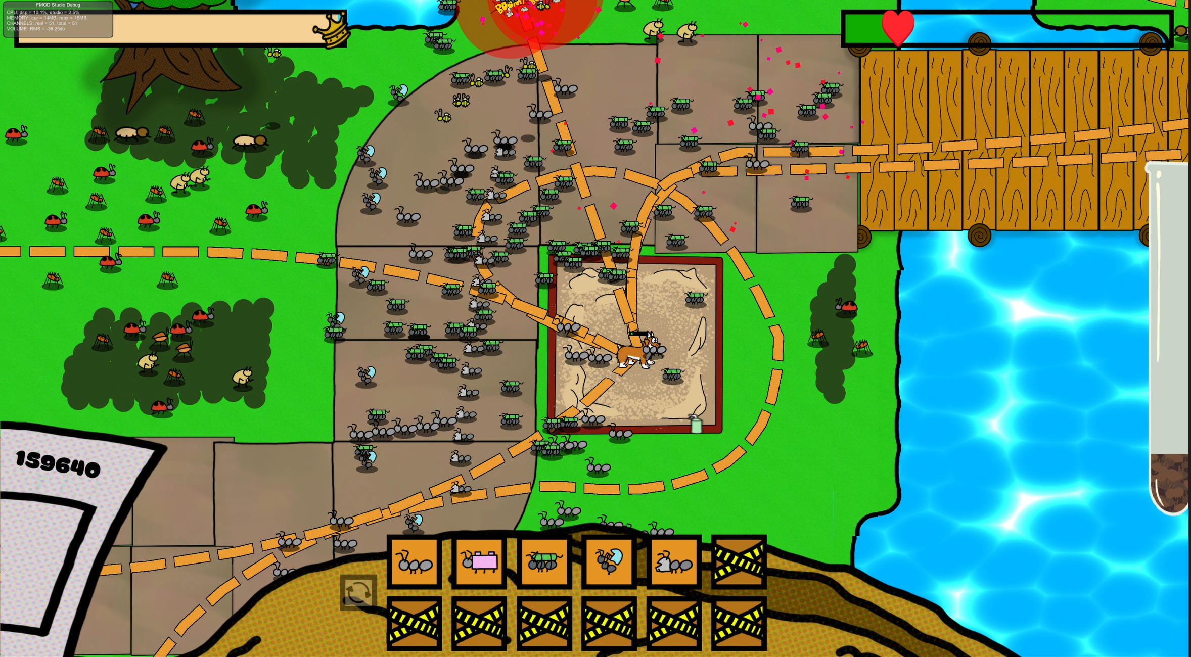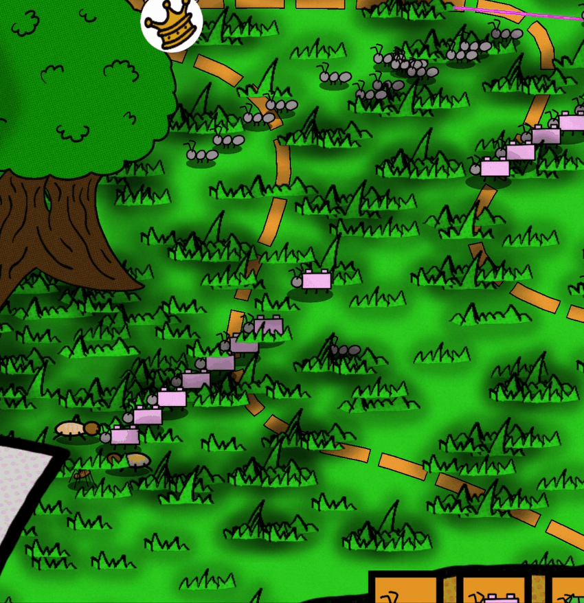 Before going into specifics, let me go into more detail about Go! Save The Queen! And what we’re aiming for to help give you an idea of what is different. Go! Save the Queen! is what we are dubbing as an “Escort Tower Defense” game, where it is your job to draw lines of ants, which act as your towers, to defend your queen from the hordes of enemies coming in as they move throughout the level. The most significant change from traditional tower defense is how levels work. Unlike a typical tower defense game where enemies move from their spawn to the goal on a set path, Go! Save The Queen! Has the spawns and goal constantly switching from place to place. Not only this, but how the goal moves through the level continuously changes; it can speed up, stop, go to areas where regular enemies or towers can’t reach, and much more. Some other things about the game include aiming for a fair but challenging game and a lighthearted tone.