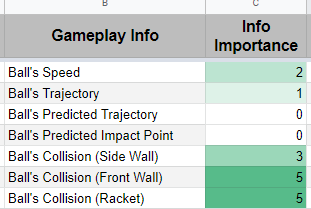 To do this, I evaluate each gameplay information according to a criterion of precision: on a scale of 0 to 5. 0 meaning that the gameplay information must be hidden and 5 meaning that it must be extremely precise (like displaying HP as big numbers on top of a huge health bar in a HUD).