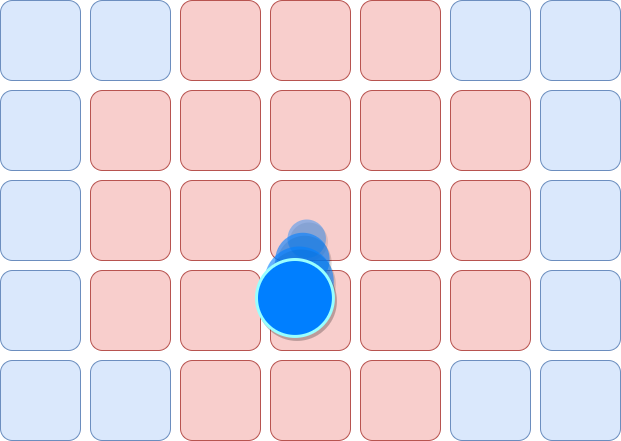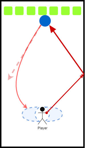 The ball always adjusts its trajectory to get back in the blue areas around the player