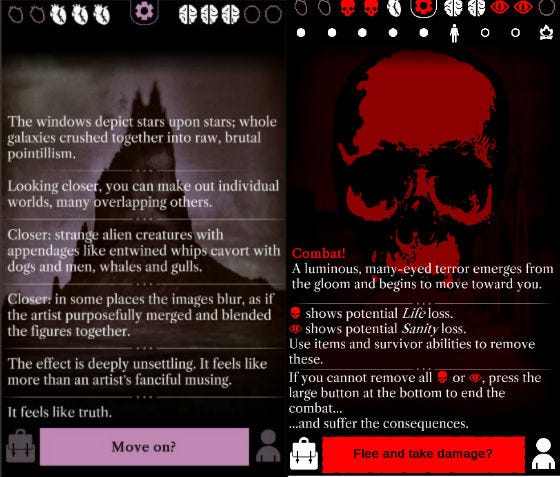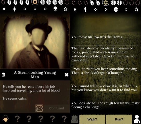 The Horns is a tremendously evocative text horror game for iOS, PC, and Mac that puts the player in a world overcome by monsters, forcing adventurers to make difficult choices in order to survive. We spoke with the game's developer Dene Carter via email to ask about designing his world of cosmic horror.