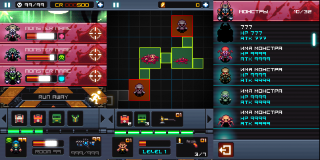 The very first prototype was a combat action game built of SMS display-like blocks, and was called Dead Shell: Message Roguelike. The main question that Anton and Alex had in their minds when they were designing the game was, “What would an RPG for the lazy look like?” Their idea was as follows: a mobile RPG must not make the player do anything boring, and all integral components must be on one screen, only requiring the player to tap the right spot. It’s unlikely the user will want to read a lot of text. Beautiful panels with action icons, something like banners, on the other hand... The main goal was to make the game fast and easy to grasp. The guys decided to display those action panels in turns, to avoid cluttering up the whole screen.