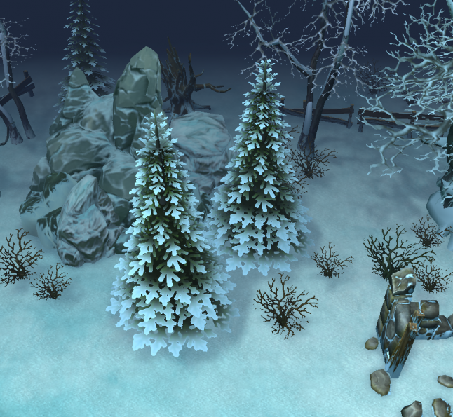 Our programmers went over a particularly large number of possible solutions while working on a system for rendering the landscape and trees. Among the landscape-drawing options they considered were a fully premade 3D model and a tiled landscape with a special mechanic for splicing tiles. In the end, they settled on a hybrid method involving a variably detailed polygonal mesh, an overall color map, blendable detailed textures, and additional 3D objects. For drawing trees, the programmers and 3D modelers went over a dozen and a half different algorithms to find the nicest-looking and most efficient one. The approach they chose allowed them to draw shrubbery and trees and show them being swayed by the wind. Incidentally, while working on the trees, they concluded that firs are preferable, since they have a simpler structure and can be rendered more quickly. Part of this code was written in a couchette car on the train from Kaliningrad to Moscow by one of our programmers, as he was admiring the endless snowy forests of Belarus just outside :)