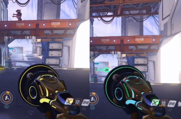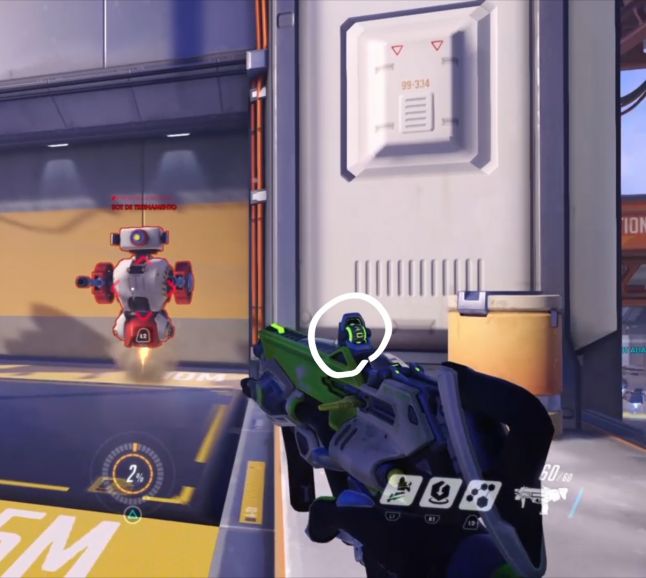 These diegetic elements have two functions in the game: creating more player feedbacks and showing the personality of the heroes. The soldier's weapon represents his tactical-oriented thinking and shows a bit of the character's decision-making process. Contrasting with Roadhog, who puts a lot of iron scraps in his gun and does not care if he has a shot left over or not. The diegetic elements are used to build the characters personality and the world's narrative.
