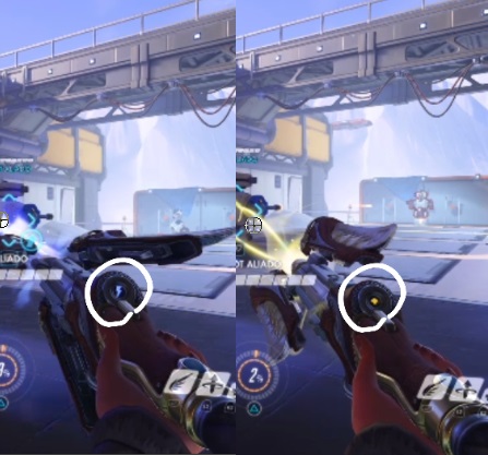 Mei's ice shooter has a visibile liquid charge that depletes.
