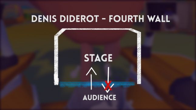 Let's Imagine a theater seen from above. The theater has 3 walls, one behind and two on the sides. When Denis Diderot talks about the fourth wall, he defines it as an imaginary barrier that separates the stage from the audience. This wall is invisible looking from the outside in, allowing us to watch the presentation. On the other side of it are the actors, interpreting their characters, for whom this barrier is opaque and completely ignored, the characters are oblivious of the audience and the wall itself.