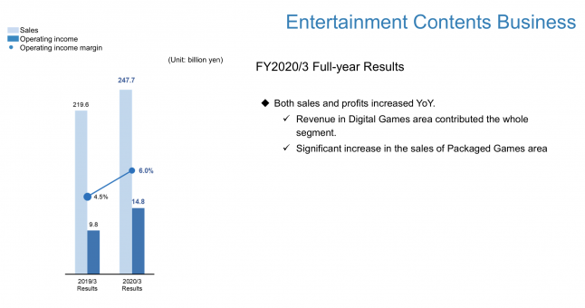 Packaged game revenue increased to 78.2 billion yen ($730.6 million) from 54.6 billion yen ($510.1 million), with unit sales of retail titles rising to 26.7 million in FY19 from 23.4 million in FY18.