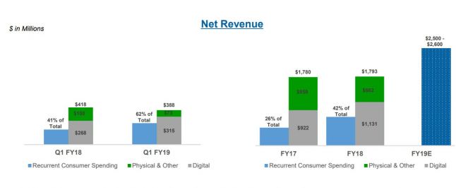 While the company's overall revenues fell, its revenue from digital sales (of everything from full games to digital currency) rose to $315 million from $268.2 million a year ago. That means 81 percent of the company's revenue this quarter came from digital sales, driven in large part by recurrent player spending in games like Grand Theft Auto Online and NBA 2K18.