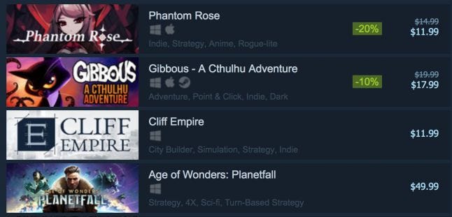 Nonetheless - if I was making any game from scratch in today’s market and looking for a more reliable ROI, I’d look at the success of publishers like Paradox Interactiveclosely. You could think about how I could do similarly deep work on a smaller scale, or take a ‘lite strategy’ approach that’s easier to port to console.