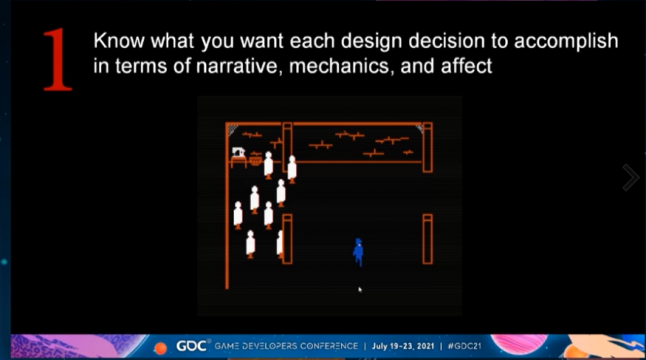 Smith’s summed up his first “tool” as this: “Know what you want each design decision to accomplish in terms of narrative, mechanics, and affect.”