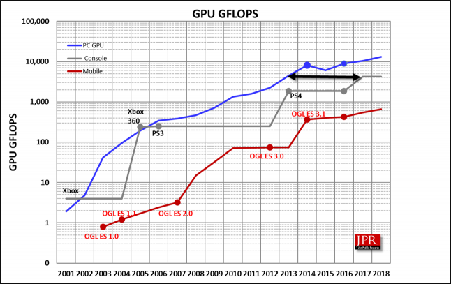 The mobile platforms like smartphones and tablets have processing power that is at least ten years behind anything you can do on PC. In theory, the biggest distribution of meaningful computing power our world has ever known is only now capable of rendering Call of Duty and maybe Borderlands. This isn’t even factoring the storage costs for the content and the battery life needed to sustain the horsepower. Of course, there is a wide range of capabilities in mobile as well; I would venture that most smartphone owners still don’t have the processing power to attain the AAA gameplay we remember on PC and other platforms as much as ten years ago!