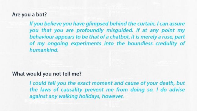 [Ocelot Society Team] Yes! Amplitude has a very indie way of making things, i.e. letting every developer involved come up with fresh ideas, constantly striving to improve the project. Throughout the production, Emmanuel was directly in contact with the writers (Note: Amplitude used our own writing staff but primarily two excellent British freelancers, who found the perfect tone of disdainful snark needed for a genius AI), sharing with them his experience of chatbots, and exchanging ideas for Machiavellian features.