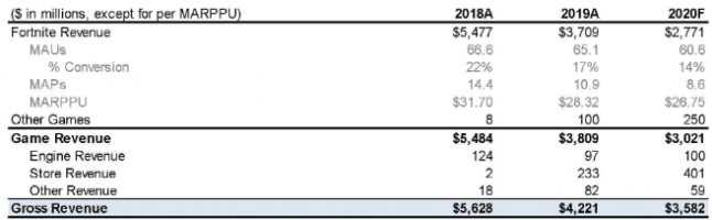 For instance, we now know that Fortnite alone brought in a combined $9.17 billion in 2019 and 2018, and was forecasted to bring in another $2.8 billion during 2020 despite an expected decline in monthly active users. Epic Games' other epic games (which includes Psyonix's Rocket League and Epic's own Battle Breakers) brought in a combined $108 million across those same two years.