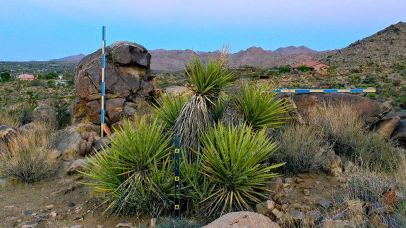 I had the chance to try out my home made photogrammetry calibration system in Joshua Tree last week. With temperatures in triple digits throughout the day, the only reasonable time for this type of activity is early in the morning when the Mojave is also at its most beautiful and wildlife are at their most active. I was surrounded by quail and lizards (no snakes) while setting up and plumbing/leveling the posts a little before dawn and a coyote loped by a few yards away, seemingly indifferent to my presence.