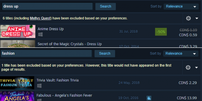 There’s a thirst for dressing up, yet there isn’t even a fashion games section on Steam.