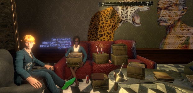 “Specifically, I wanted to create an inventory system where you could pick items up in the world and be able to give them to characters. I also wanted to create the ability to eaves-drop and interrupt conversations, whereas in *Off-Peak* the conversation system was more binary and less reactive," continues Heffernan.