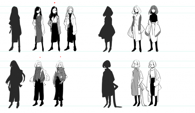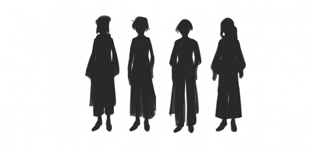 Some of the first silhouettes of Eda, our female protagonist. These all look pretty similar and didn’t leave much room for the imagination.