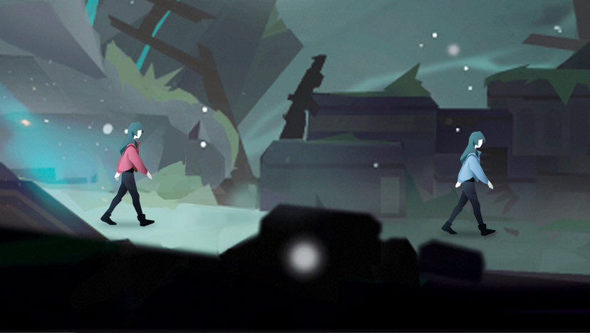 We placed Eda in some of our concept environments to get an idea of how she would look like in game, and immediately noticed that she became one with the background. It was clear that an entirely low saturated palette wasn’t ideal.