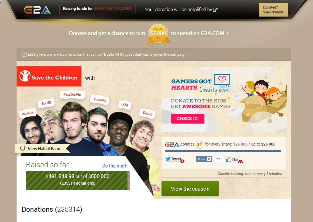 G2A offers the game for a lower price, it's just as fast and convenient as Steam (complete with a slick, safe-looking website), and you get a real, honest-to-Gabe steam key! G2A presents themselves as an innocent second-hand store, akin to eBay or Craigslist. You buy stuff on eBay and Craigslist, right? Right of first sale and all that. Furthermore, G2A goes way, way, out of their way to build legitimacy, too, which is what keeps their $I cost down in the eyes of their customers. Not only do they sponsor esports teams and major Youtubers (PewDiePie's sponsor can't be bad!), they also run Charity drives and other events: