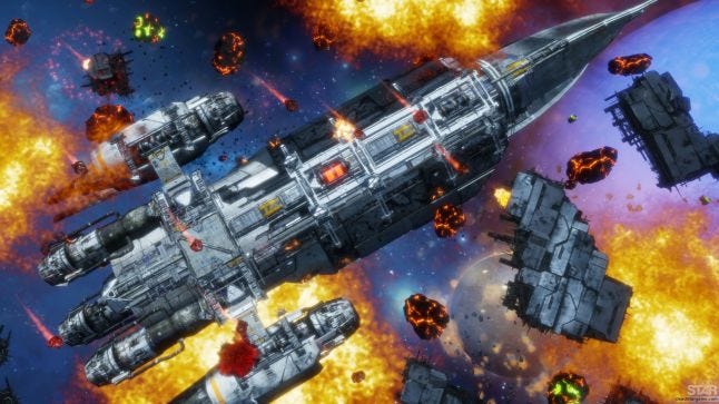 A couple of months into development we stood at a crossroads: we had a really fun game with the systems we already had online, but it wasn’t yet integrating the “giant capital ship versus marauding horde” idea that had formed the original core of the design.