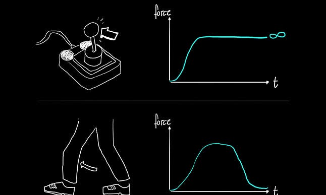 For moving around fluently and avoiding motion sickness it is crucial to have an understanding of the mechanics going on in the brain while experiencing motion and adapt to what is comfortable. On regular 2D games with gamepad you hit a button to execute a movement repeatedly, which is a bit similar to sitting in a car or other cockpit in the real world. That’s contrary to independent locomotion in the real world where for every action you do with your own body there has to be added a certain force of which we are mostly familiar with triggered response and acceleration.