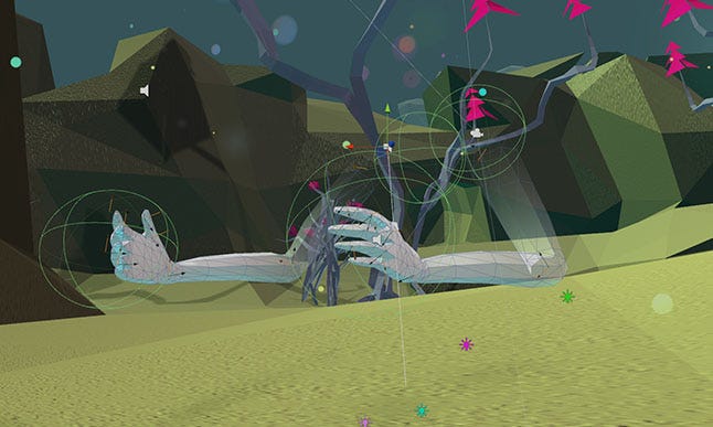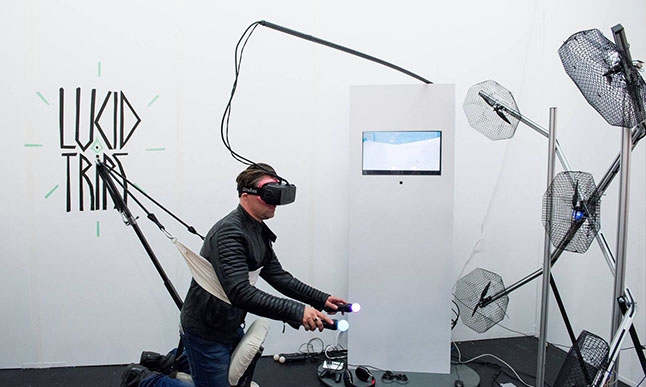 After 3 years of prototyping and iteration the user is now able to seamlessly switch from walking to jumping, flying or climbing, which lets him explore the magic environments on the artistically designed dreamplanet in Lucid Trips moving around completely free. It opens up a whole other possibility of perception of the virtual worlds in terms of space and dimensions.