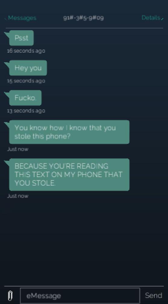Here’s an example from early in the game. Darlene first texts you, saying that she knows you stole her phone.