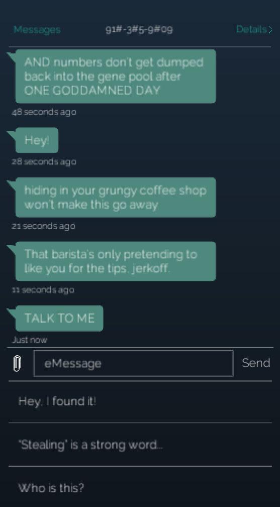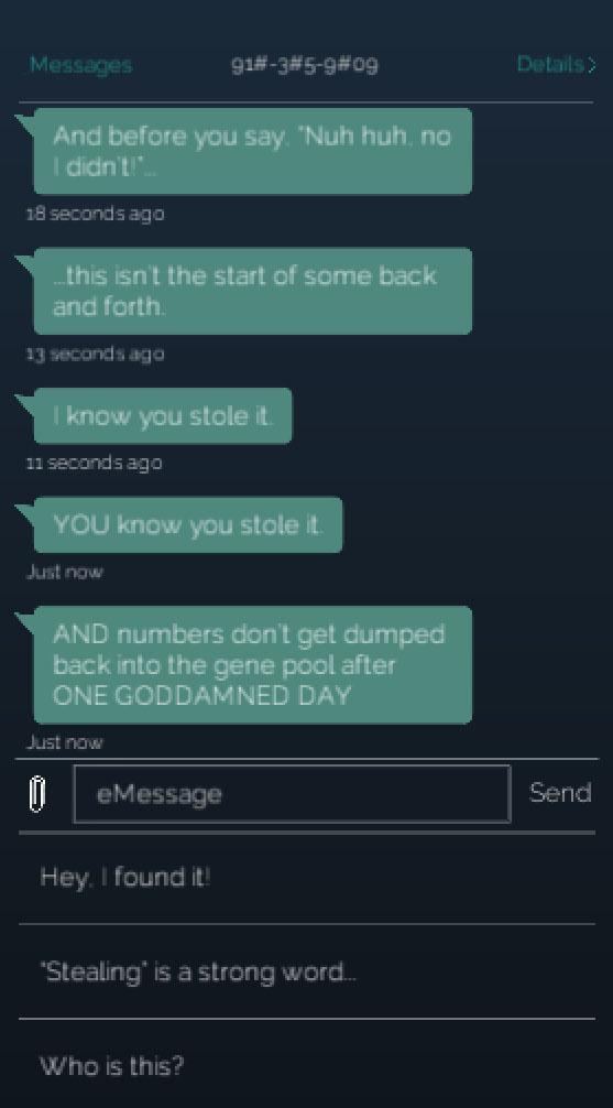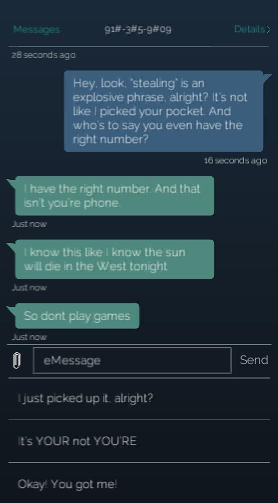 So, our goal, all said, was pretty straightforward: this game should feel like a real app - something genuine human beings that breathe air and drink water and all of that mammal stuff would actually use - and the act of sending and receiving texts should be fun! The first issue - feeling real - meant from a writing perspective a few things that might seem counter to a good gameplay experience.