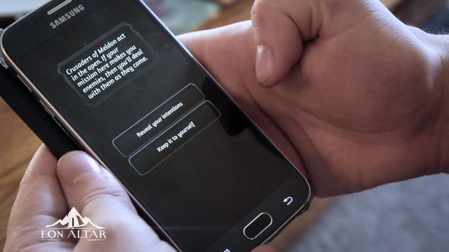 Eon Altar is a local co-op RPG, but the trick here is that rather than controllers, we use your mobile devices as the character controllers. Why? Secrets. With each player having their own screen, during the campaign we can send players their characters’ thoughts, personal quests and missions, and dialogue. So while you’re playing a cooperative RPG, we can amp up competition between the players as designers by providing competing goals and personalities, similar to an actual session of D&D or Pathfinder.