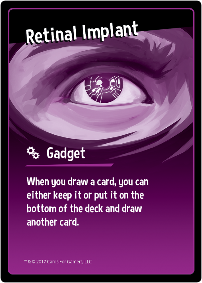 A couple other Spy Fight combo-heavy Basic rarity cards: Laughing Gas Briefcase (combos defensively to nullify big Attack and Skill damage cards) and Retinal Implant (combos with card-drawing effects)