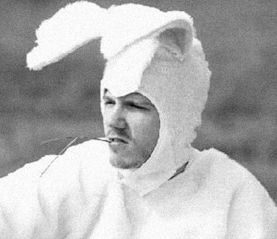 Cliff doesn't pull punches, and has a really deep knowledge of games that he's able to apply to the way he designs. As a show of respect here's a picture of him in a bunny suit.