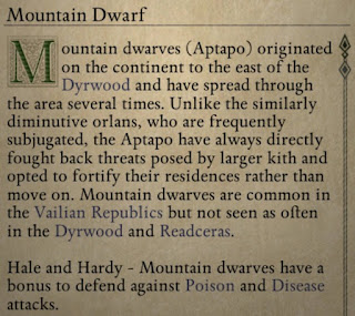 So about 160 words (not counting rollover text), to learn about the woods dwarves and the mountain dwarves:
