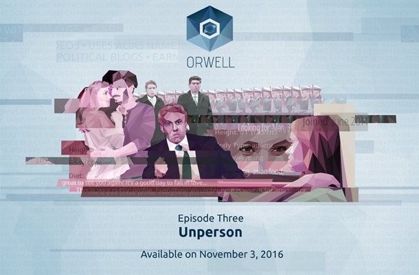 Orwell Season Two will release across three complex episodes: Each episode will offer more choice on how to advance than before. The story will also feel more personal than the original, focusing in particular on three individuals and the complicated relationships they have with each other--and the truth. Return players should expect a more dynamic environment: based on the newly added “time of the day” characters may act on their own behalf and events unfold independently from the players‘ actions.