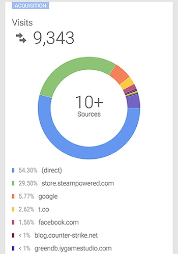 Once you launch your campaign on Greenlight you get access to a basic analytics site on Steam. If you want more detailed information it also allows you to synchronize a Google Analytics account. I recommend to do this because it gives a clearer view about where do people coming to your page come from. It will also help you to make future decisions about how to approach your marketing strategy for the game, the launching or even to decide into what languages should the game be translated.