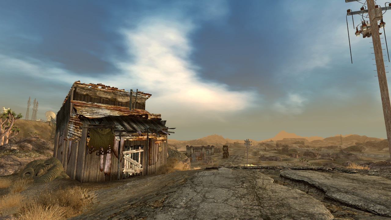 I remember that taking photos in Fallout: New Vegas was as much about enjoying the scenery as it was spending more time in the game. I didn’t actually like New Vegas at first; it wasn’t as dark as Fallout 3 and I wasn’t fond of how its cool greens and grays were replaced by the bright orange palette of the Mojave. A Nexus mod, Western Sky, actually changed my mind, adding dynamic lighting and weather effects that turned the environment hostile but also strangely beautiful, with pitch-black nights and intense blue skies and rad storms that would pummel the Courier into the sand. The mod not only had the effect of making the game more strategically interesting, but visually as well.