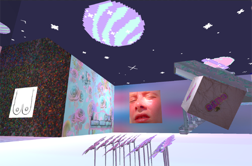 The c̟y͑b̊e̟rtweͤe HQ* is a gallery shooting sugar-spun filaments into the virtual world. Navigate a serene island nestled in the middle of a gleaming mirrored sea under a brilliant night sky. Here you will find a collection of digital works in a vibrant 3d gallery. what if cyberpunk had a younger sister that was secretly better at coding?