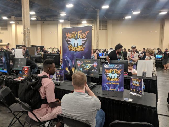 The Media Indie Exchange has showcased the work of indie devs for the past six years at Evo, featuring both fighting games and other genres. Mighty Fight Federation, a 3D arena-based fighter, had a three-character build present for attendees to play.