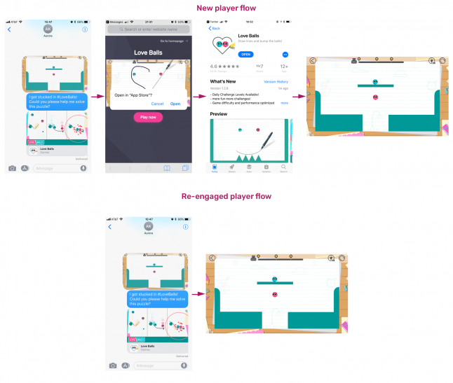 When a friend receives a shared screenshot from a player being stuck on a level and asking for help, the link should deep-link straight to the same point in the game as the one they see in the screenshot. This will remove friction for players.