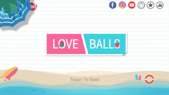 While Love Balls’ start menu does have plenty of icons for sharing, leaderboards etc, they’re unobtrusive and kept to the very top of the screen. It’s striking how little text is used, making the flashing “Touch To Start” even more obvious and appealing.